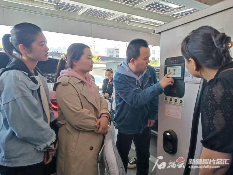 5月10日,在國網(wǎng)烏魯木齊供電公司舉行的“你用電 我用心——中國品牌日電網(wǎng)體驗師活動(dòng)”中,體驗者現場(chǎng)了解充電知識。石榴云/新疆日報記者 張冬梅攝
