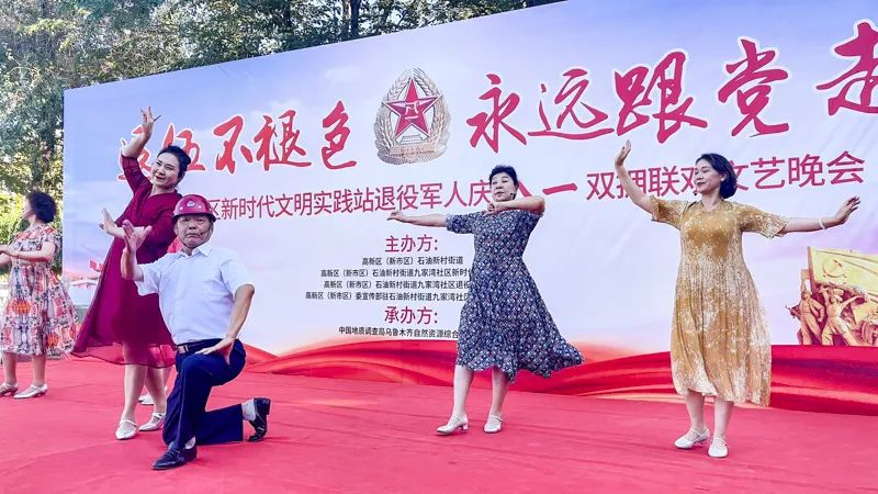 中國人民解放軍建軍96周年來(lái)臨之際,高新區(新市區)石油新村街道九家灣社區聯(lián)合高新區(新市區)委宣傳部駐九家灣社區“訪(fǎng)惠聚”工作隊來(lái)到中國地質(zhì)調查局烏魯木齊自然資源綜合調查中心,舉辦了“退伍不褪色 永遠跟黨走”雙擁聯(lián)歡文藝晚會(huì ),武警復轉退伍軍人及家屬們歡聚一堂,共慶“八一”建軍節。