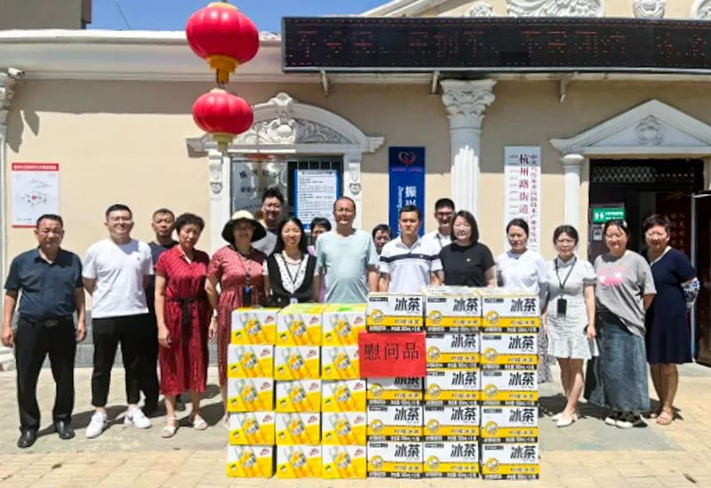 活動(dòng)中,湖州路東社區第一書(shū)記、工作隊隊長(cháng)王軍帶領(lǐng)工作隊員為社區一線(xiàn)工作人員、兩個(gè)警務(wù)站以及5個(gè)門(mén)崗送上夏日解暑的礦泉水、菊花、冰糖、綠豆、涼茶等慰問(wèn)品,詳細詢(xún)問(wèn)他們的工作和生活情況,叮囑他們要注意防暑降溫,保證自身的健康安全,并對大家頂烈日、戰酷暑的精神致以崇高的敬意。