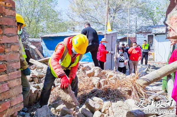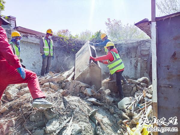 清理現場(chǎng),大家擼起袖子搬運大木頭,手拿鐵鏟和鋤頭將橫梁、墻塊、木柱一點(diǎn)一點(diǎn)拖運到卡車(chē)上,烈日下一派熱火朝天的勞動(dòng)場(chǎng)面。經(jīng)過(guò)半天的奮戰,院中的坍塌物全部清理干凈,小院恢復了往日的寬敞整潔,木塔里普·賽買(mǎi)提夫婦高興得合不攏嘴:“多虧了工作隊,多虧了社區,我們夫婦的心愿總算實(shí)現了,我們什么困難都是靠著(zhù)社區!感謝工作隊,感謝政府,感謝黨!”