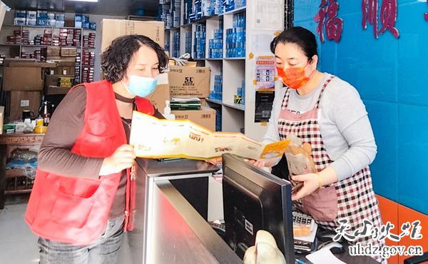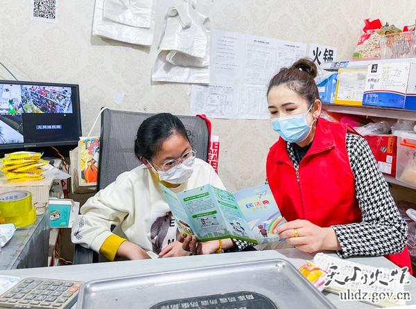 永盛社區志愿者努在艾提為轄區商戶(hù)宣傳《中華人民共和國民法典》基層群眾篇