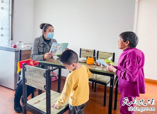 永盛社區志愿者熱義汗古麗為鉆石花苑小區小學(xué)生家人宣講《中華人民共和國民法典》青少年篇