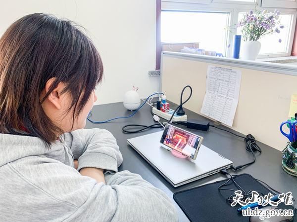 社區工作人員張羽馨通過(guò)學(xué)習強國APP學(xué)習全國兩會(huì )精神