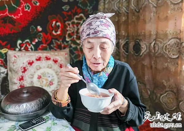 88歲的獨居老人吐?tīng)柲嵘场べ愘I(mǎi)提眼里噙著(zhù)淚花,激動(dòng)地說(shuō):“太感謝你們了,你們辛苦了,有你們的關(guān)愛(ài)和幫助,我感覺(jué)特別開(kāi)心幸福!”
