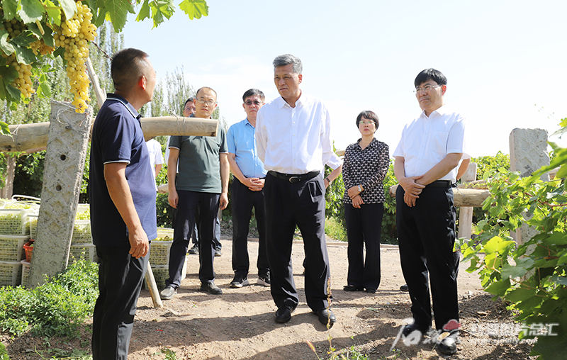 9月9日,自治區黨委書(shū)記馬興瑞來(lái)到吐魯番市高昌區紅柳河園藝場(chǎng),實(shí)地了解今年葡萄采銷(xiāo)和葡萄高效節水滴灌技術(shù)應用等情況。李彥強攝