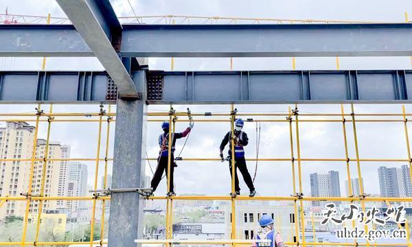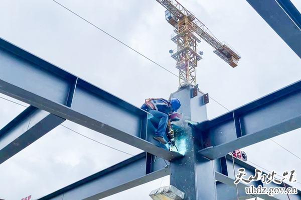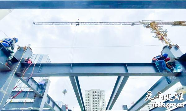 5月6日上午11點(diǎn),高新區(新市區)人民醫院項目建設現場(chǎng)正火熱施工。作為裝配式建筑,該項目建設現場(chǎng)塔吊不斷升降、旋轉,工人則負責運接鋼結構,接著(zhù)用“搭積木”的方式將鋼結構拼接完成。