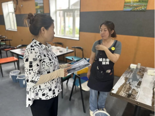 社區網(wǎng)格員在餐飲場(chǎng)所宣傳安全用氣知識