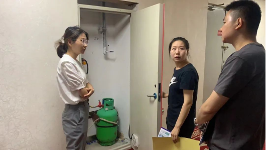 永泰社區工作人員檢查商戶(hù)燃氣鋼瓶是否合規使用