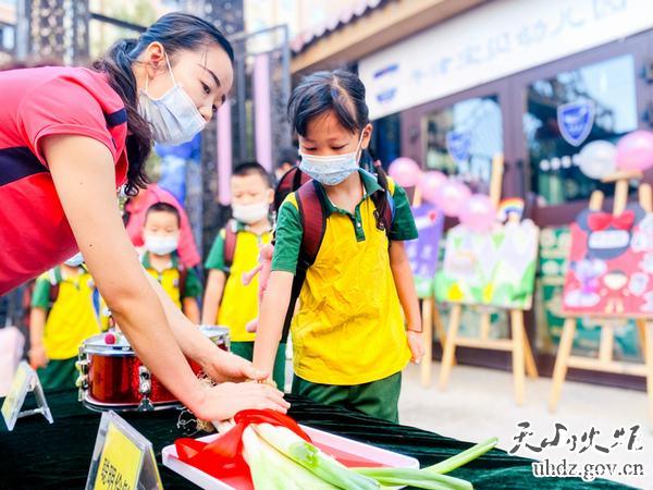 一入園,小朋友們就收到了工作隊員和老師們精心準備的“擊鼓明志”“聰明伶俐”“大吉大利”“平平安安”“身體棒棒”“快快樂(lè )樂(lè )”等6件大禮。