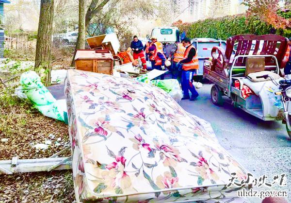 新綠洲小區屬于老舊小區,居民在樓道內堆放了很多長(cháng)期不用的廢舊物品,甚至堵塞了消防通道,存在著(zhù)安全隱患。工作人員們采取“自行清理+集中清理”方式,首先對居民上門(mén)進(jìn)行通知,動(dòng)員居民主動(dòng)清除樓道內堆放的雜物;對年老體弱、無(wú)清理意識的居民由工作隊員、社區工作人員和環(huán)衛工人們集中清理。大家分工有序,抬的抬、搬的搬,掃的掃,將建筑垃圾、生活雜物等一層一層地抬下樓,個(gè)個(gè)汗流浹背。經(jīng)過(guò)大家的努力,確保了樓道消防通道暢通,給居民營(yíng)造了舒適安全的居住環(huán)境。