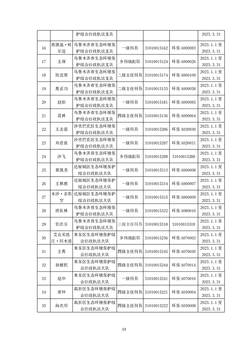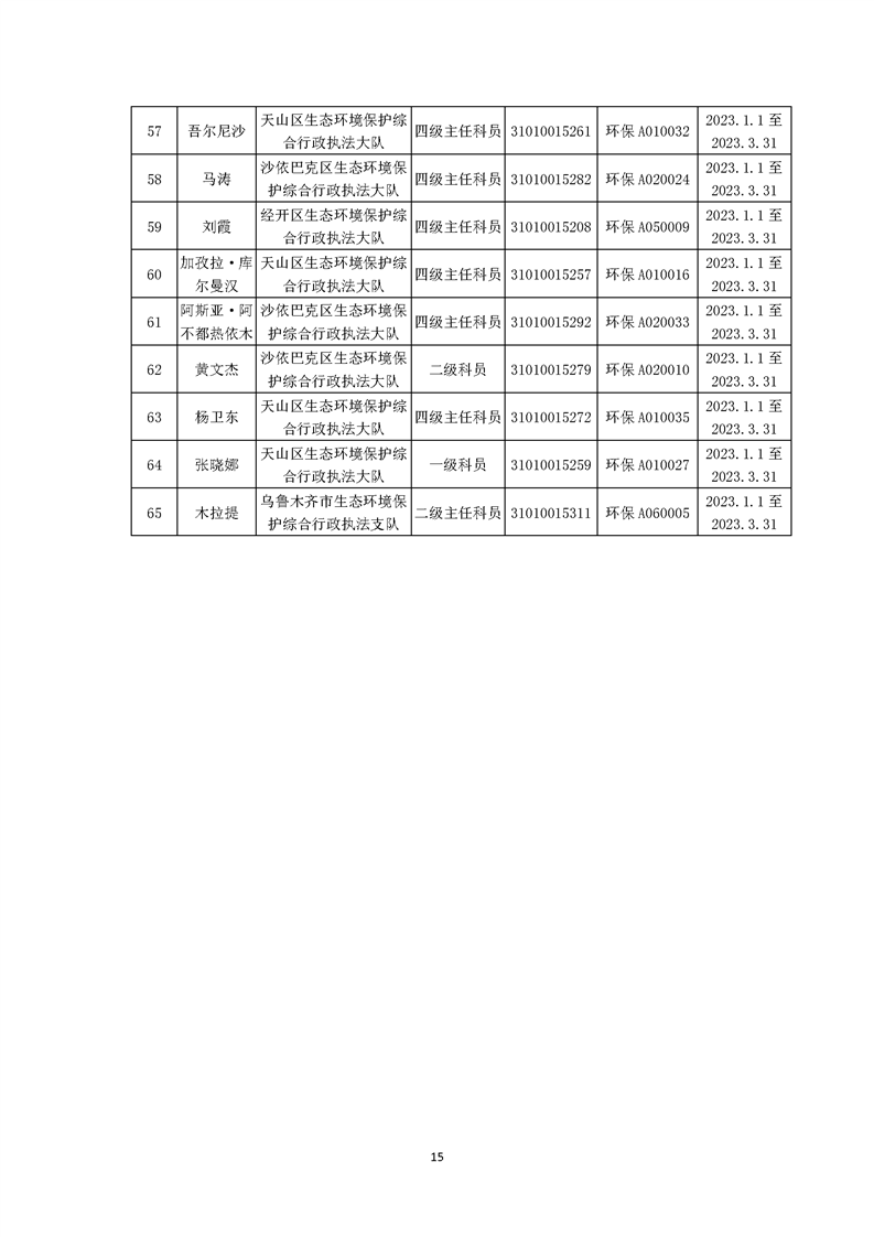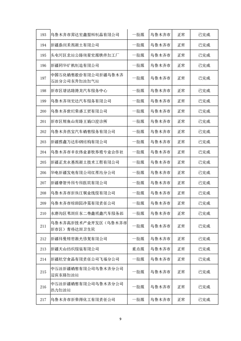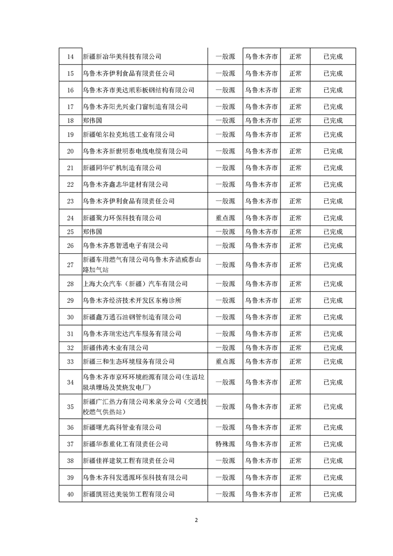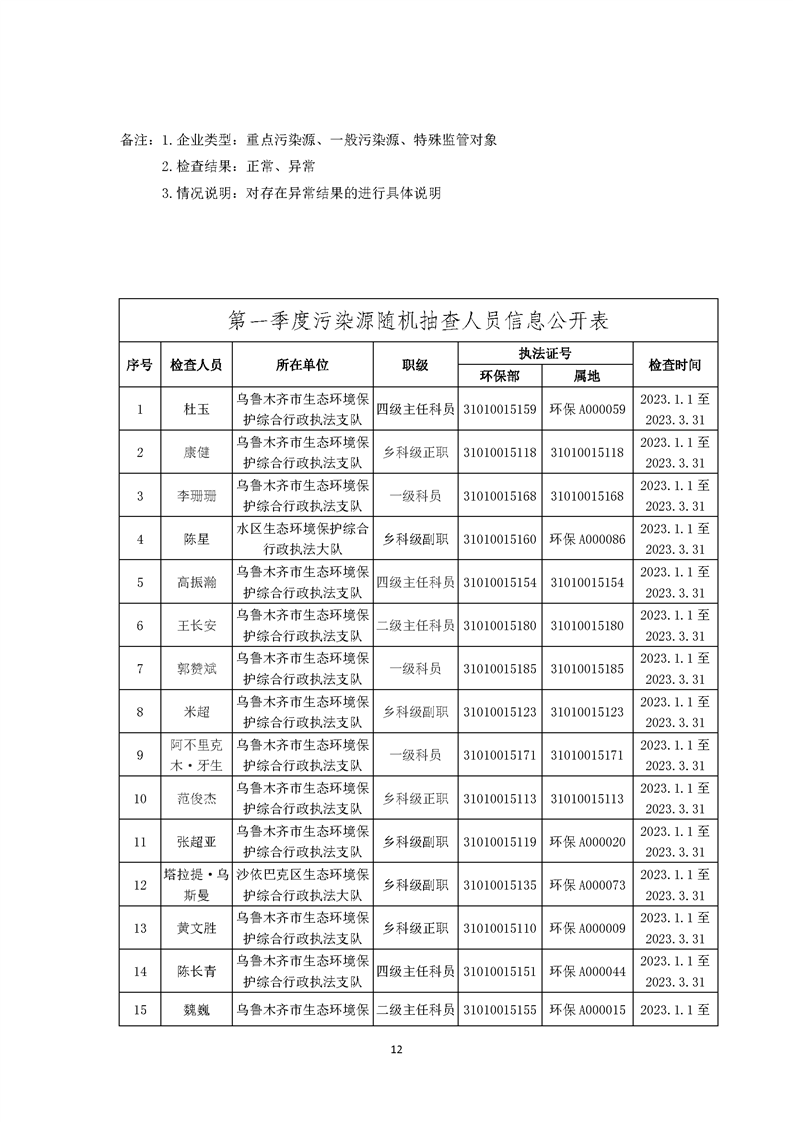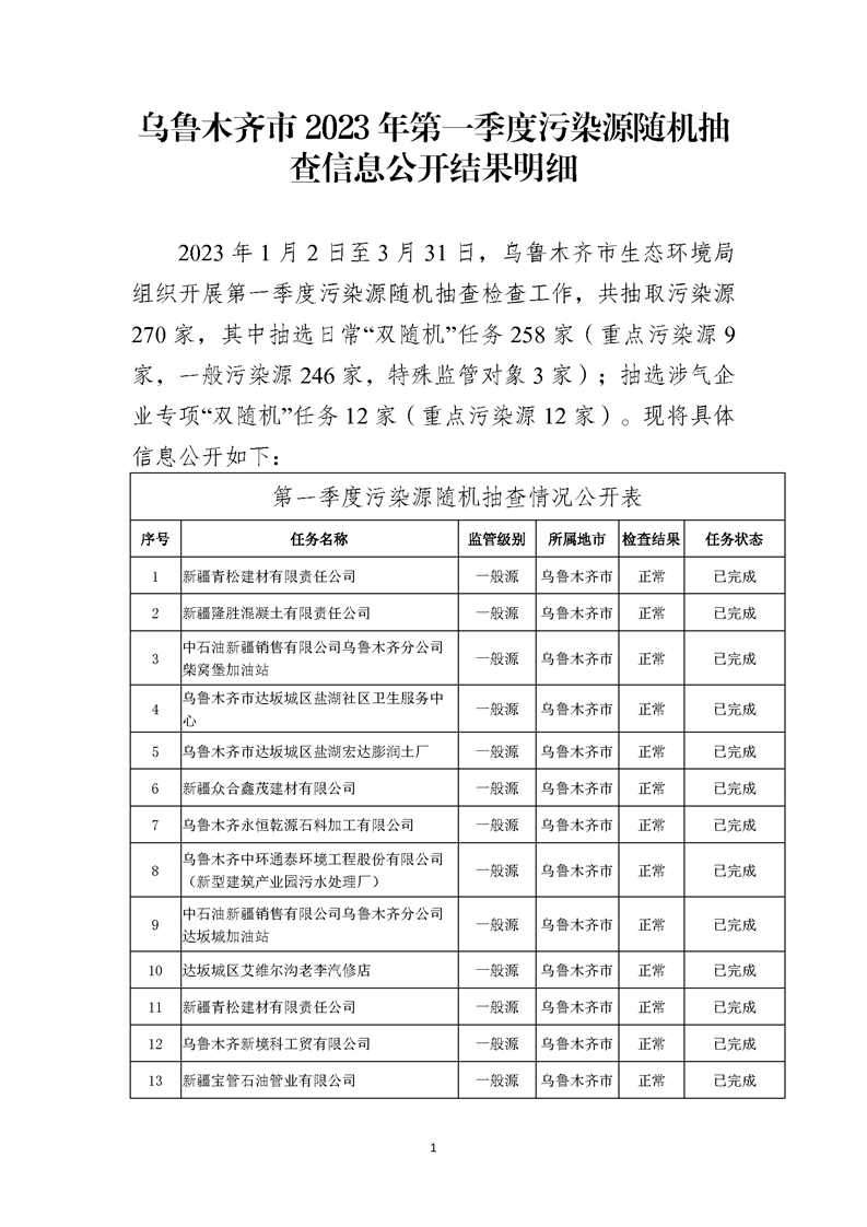 烏魯木齊市2023年第一季度污染源隨機抽查信息公開(kāi)結果明細