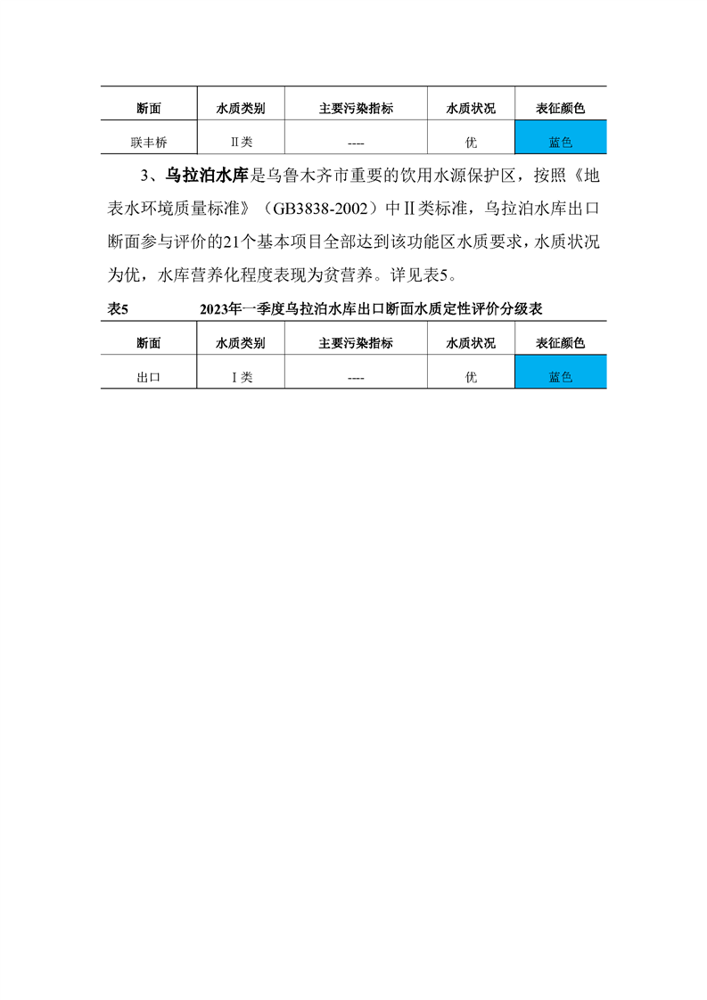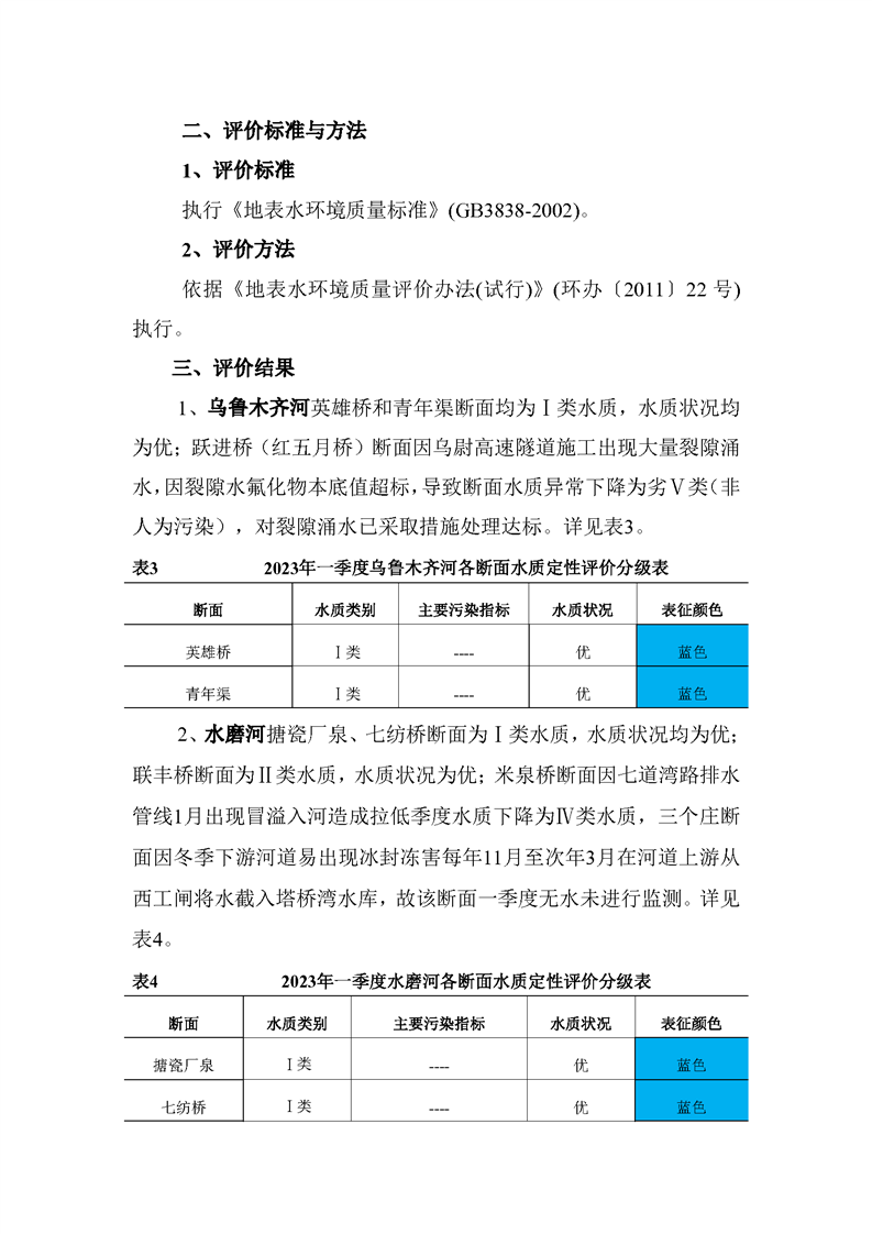 烏魯木齊市2023年第一季度地表水水質(zhì)狀況報告
