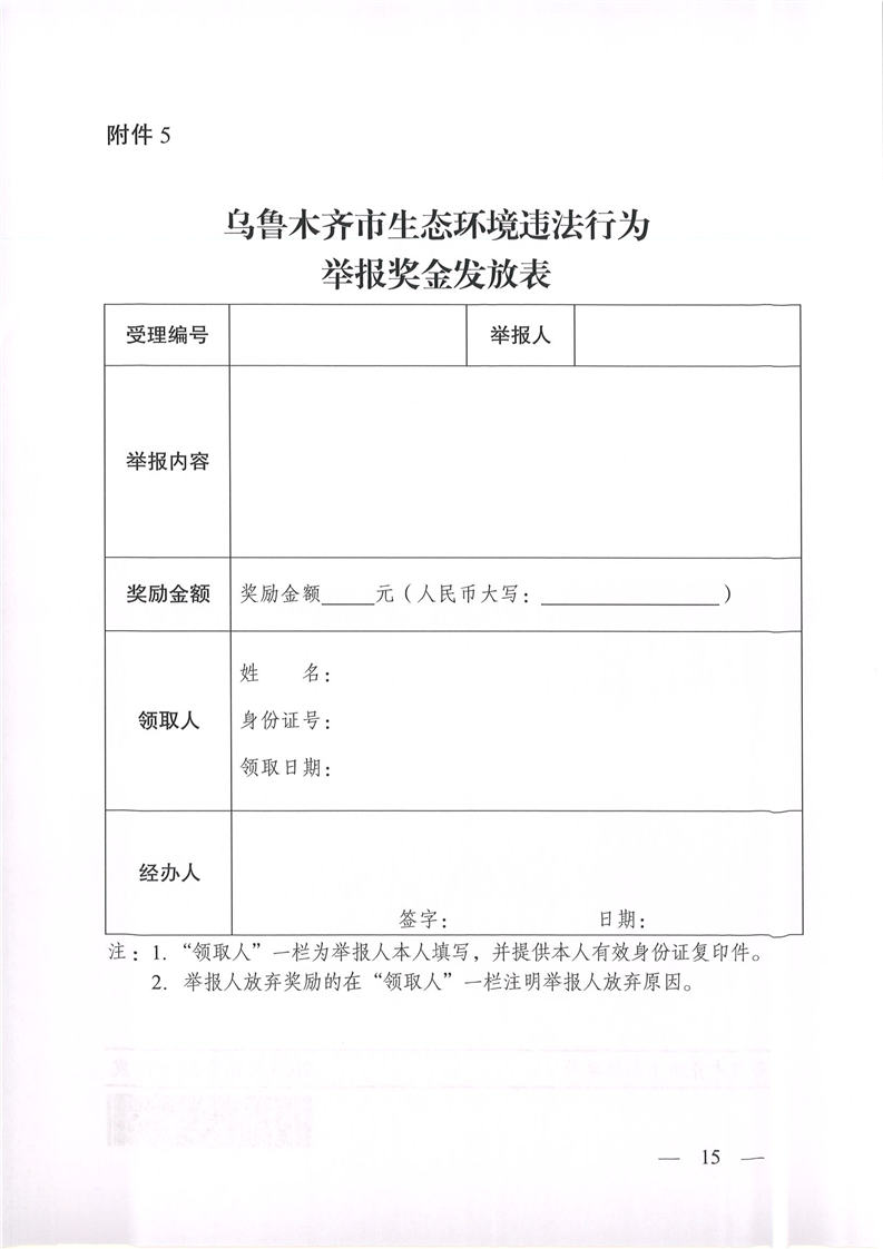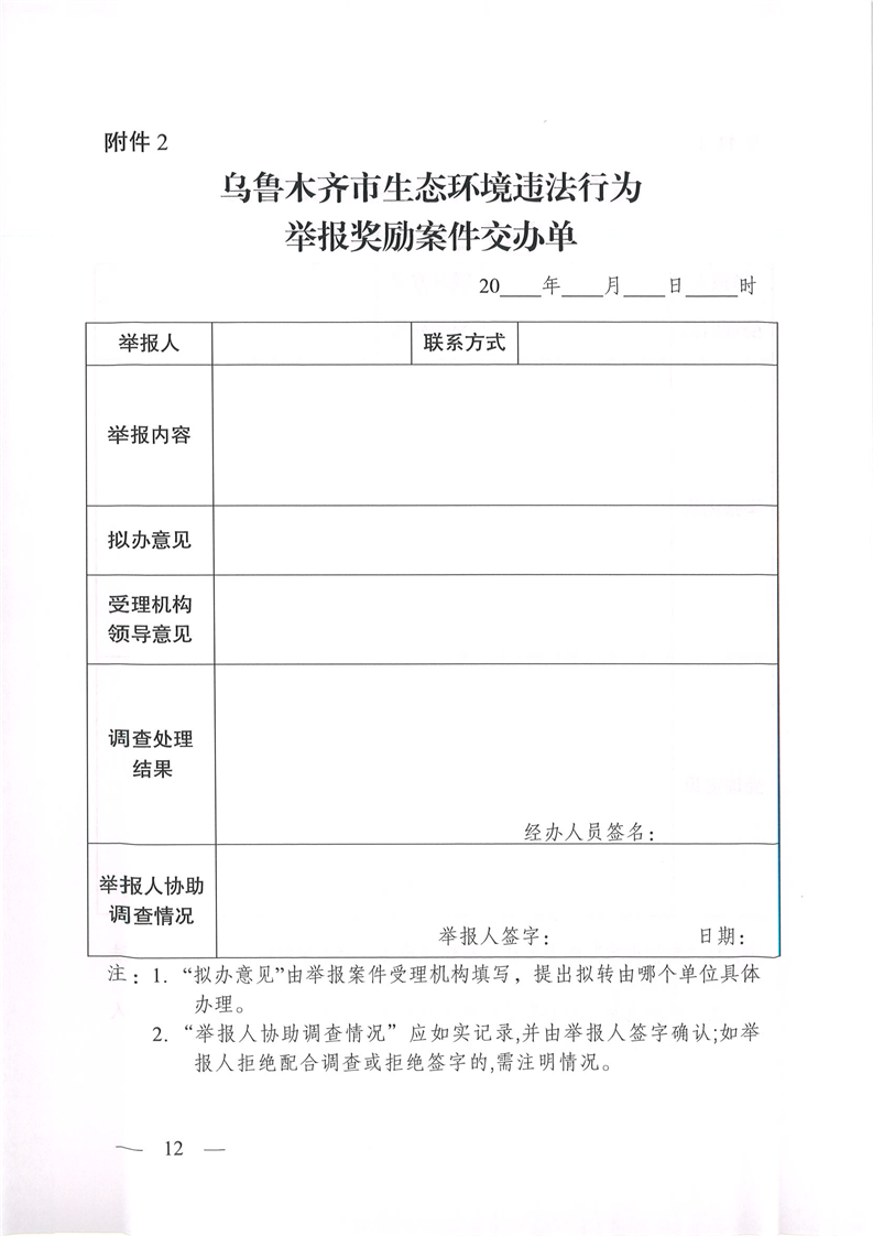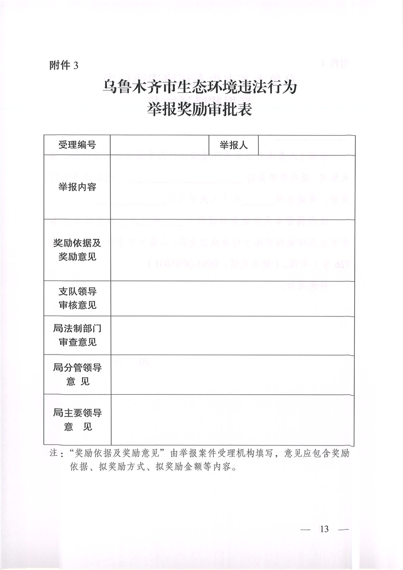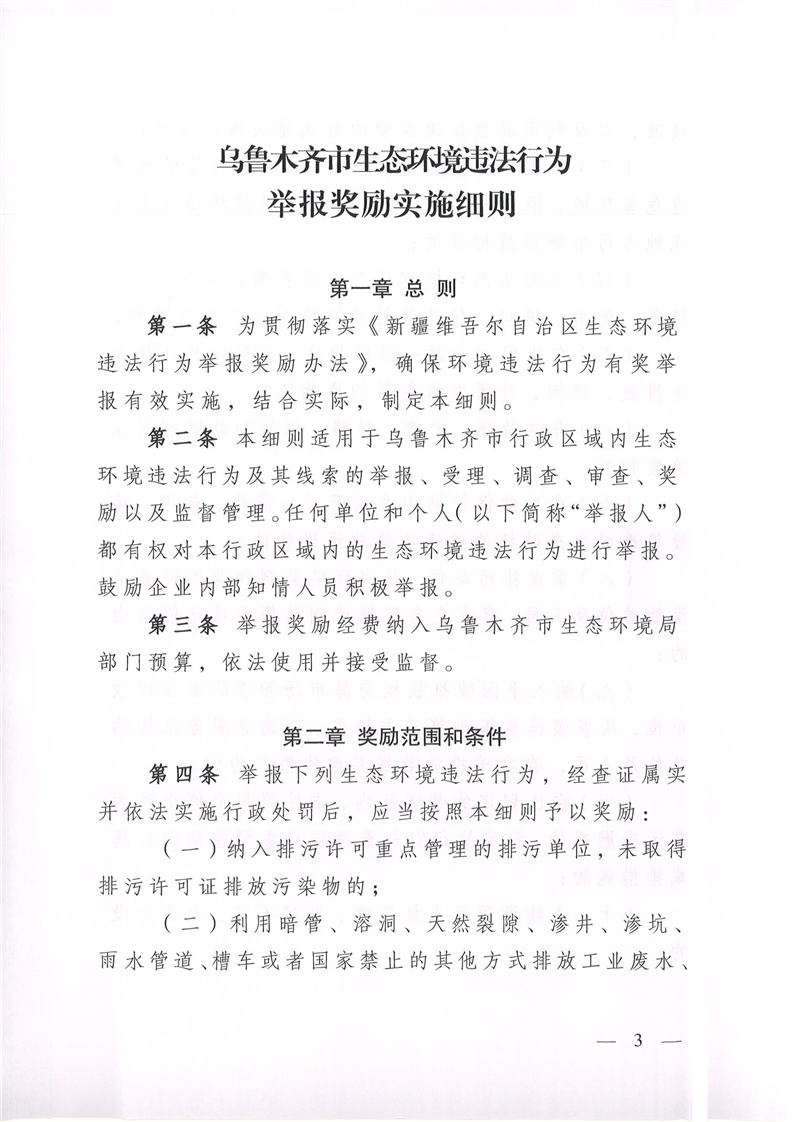 烏魯木齊市生態(tài)環(huán)境違法行為舉報獎勵實(shí)施細則