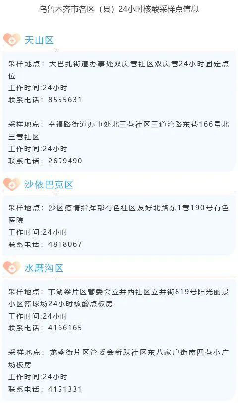 烏魯木齊市各區(縣)24小時(shí)核酸采樣點(diǎn)信息(最新)