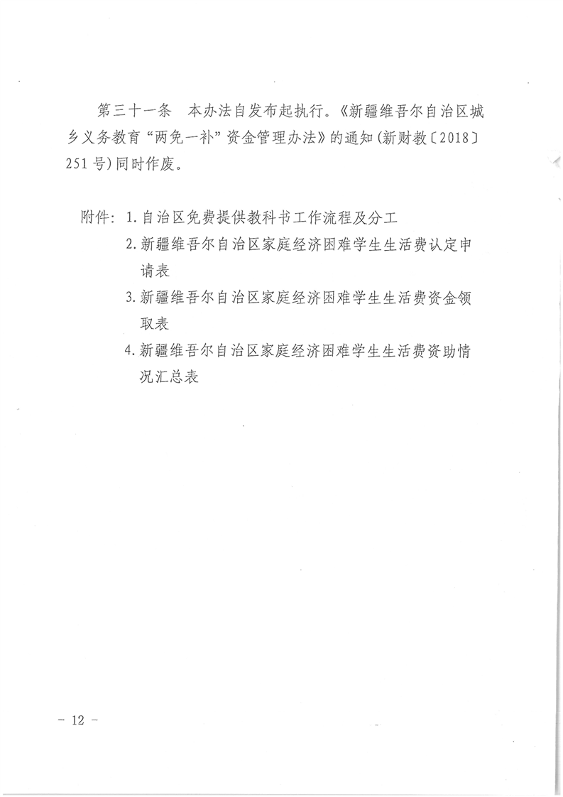 關(guān)于修訂《新疆維吾爾自治區城鄉義務(wù)教育“兩免一補”資金管理辦法》的通知