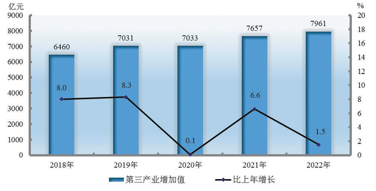 12 2018—2022年第三產(chǎn)業(yè)增加值及其增長(cháng)速度