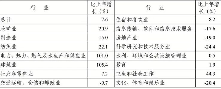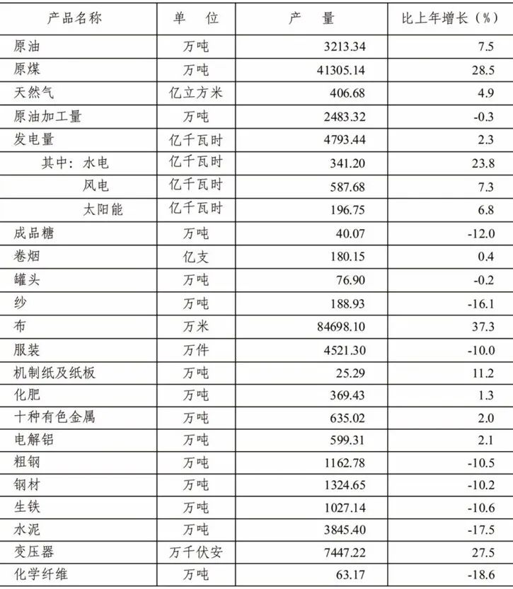 全年規模以上十個(gè)主要行業(yè)“8升2降”,石油和天然氣開(kāi)采業(yè)增加值比上年增長(cháng)5.8%,電力、熱力生產(chǎn)和供應業(yè)增長(cháng)8.7%,石油、煤炭及其他燃料加工業(yè)增長(cháng)6.8%,化學(xué)原料和化學(xué)制品制造業(yè)增長(cháng)3.1%,煤炭開(kāi)采和洗選業(yè)增長(cháng)30.9%,有色金屬冶煉和壓延加工業(yè)增長(cháng)7.8%,非金屬礦物制品業(yè)增長(cháng)11.1%,開(kāi)采專(zhuān)業(yè)及輔助性活動(dòng)增長(cháng)1.0%,黑色金屬冶煉和壓延加工業(yè)下降8.8%,紡織業(yè)下降15.1%。