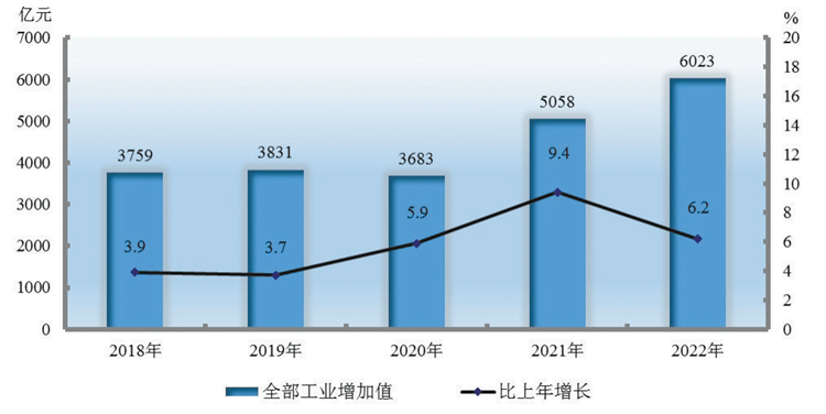 9 2018—2022年全部工業(yè)增加值及其增長(cháng)速度