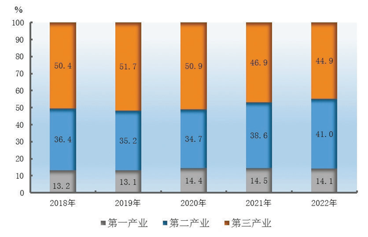 2 2018—2022年三次產(chǎn)業(yè)增加值占地區生產(chǎn)總值比重