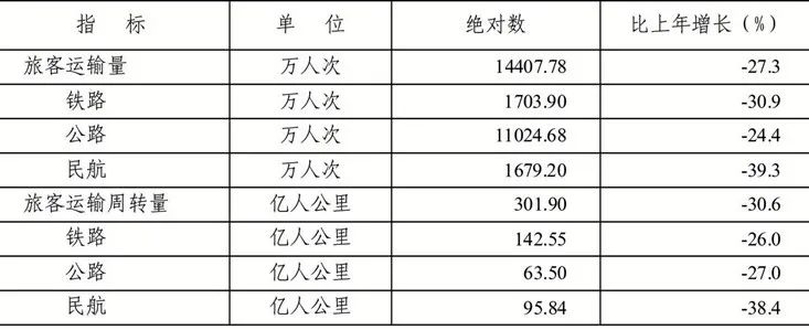 全年旅客運輸總量14407.78萬(wàn)人次,比上年下降27.3%。旅客運輸周轉量301.90億人公里,下降30.6%。