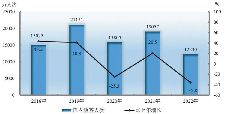 20 2018—2022年國內游客人次及其增長(cháng)速度